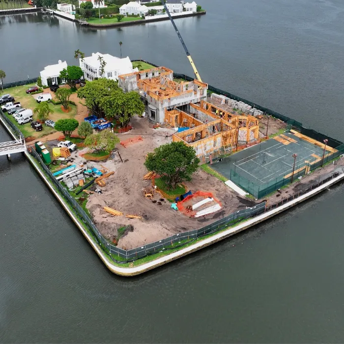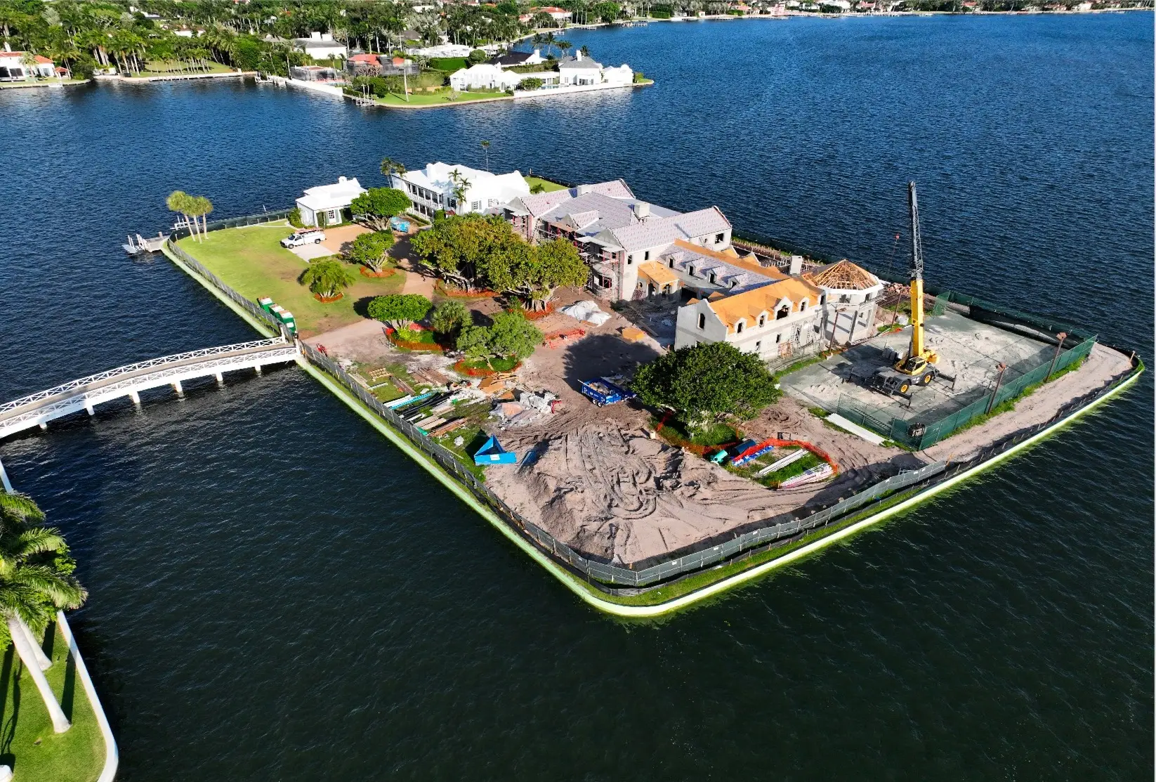 This exclusive 2.3-acre island property features the area's only private lighted tennis courts, two swimming pools, including a 98-foot lakefront infinity pool, 11 bedrooms, two full kitchens, and lake views on all sides. Construction required a specialized auger pile spread footing foundation engineered for island conditions, with all materials transported by barge due to the property's unique bridge and boat-only access. The project showcased Shellco's expertise in complex waterfront construction, seamlessly integrating modern luxury amenities with historic architecture while meeting hurricane-zone requirements.