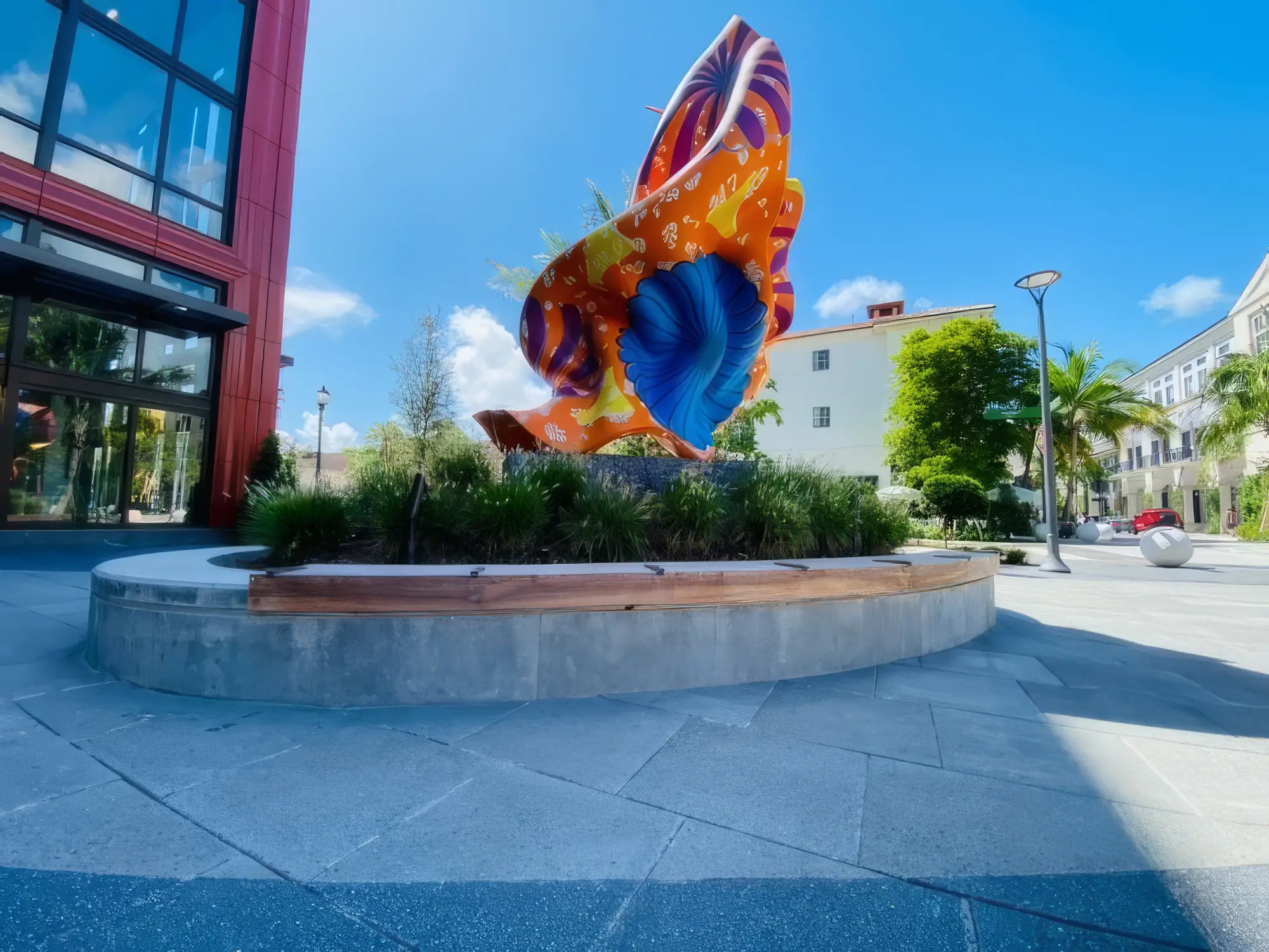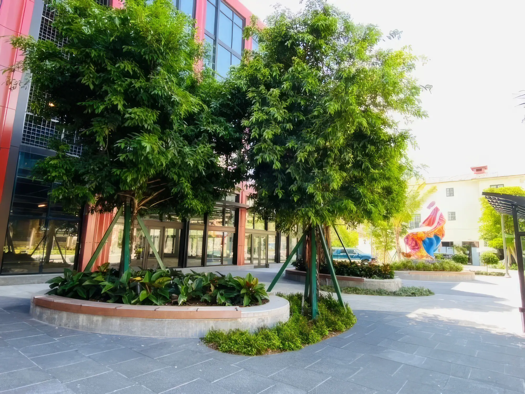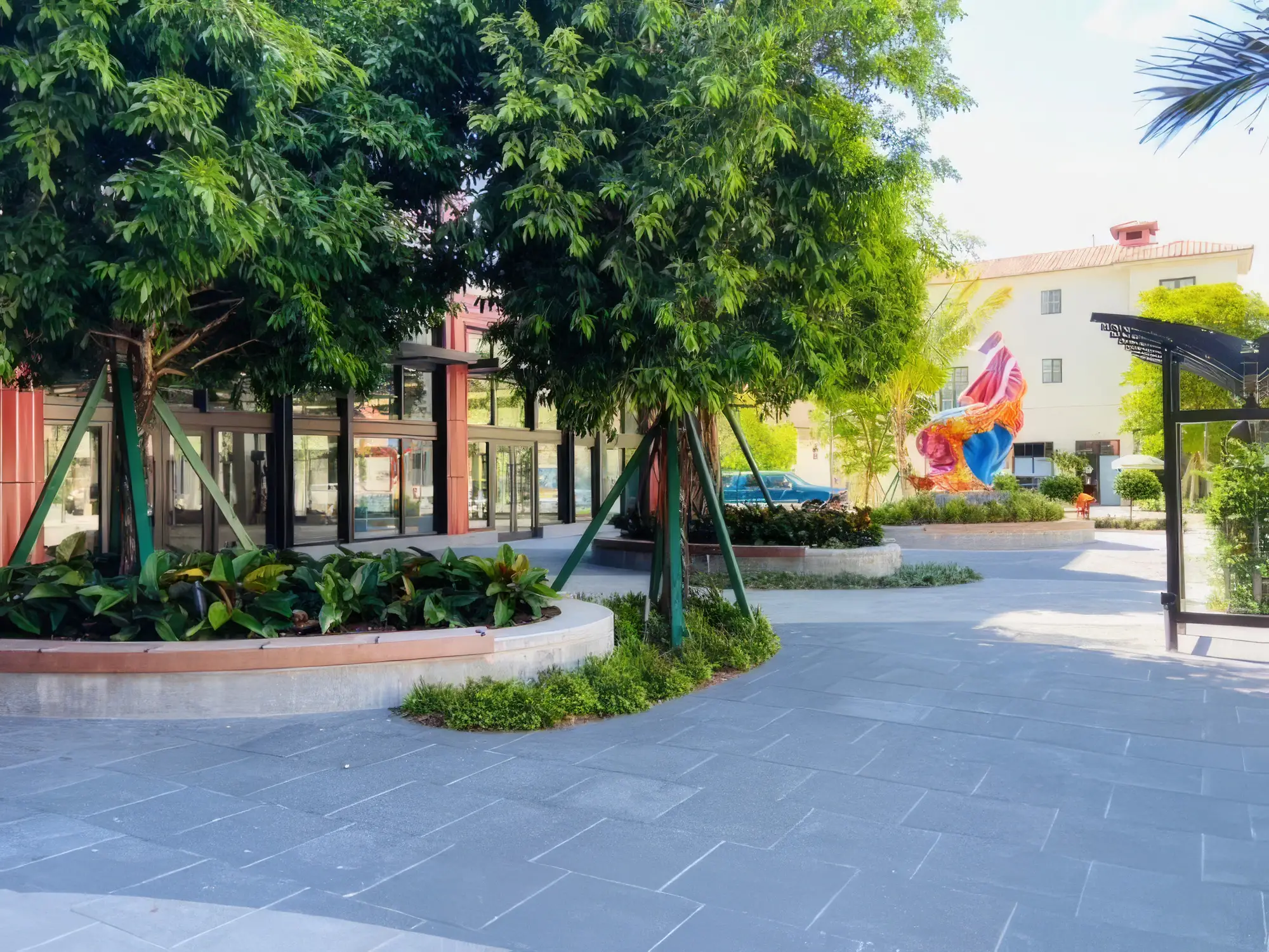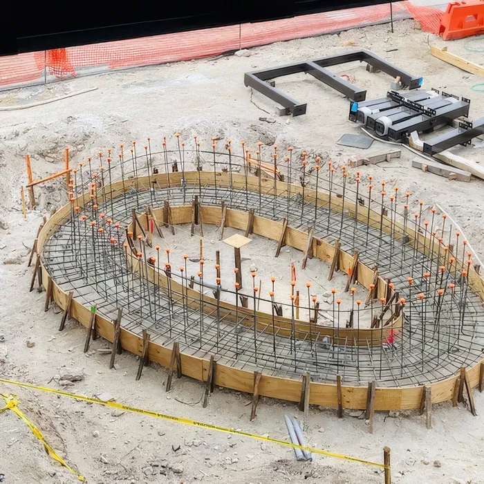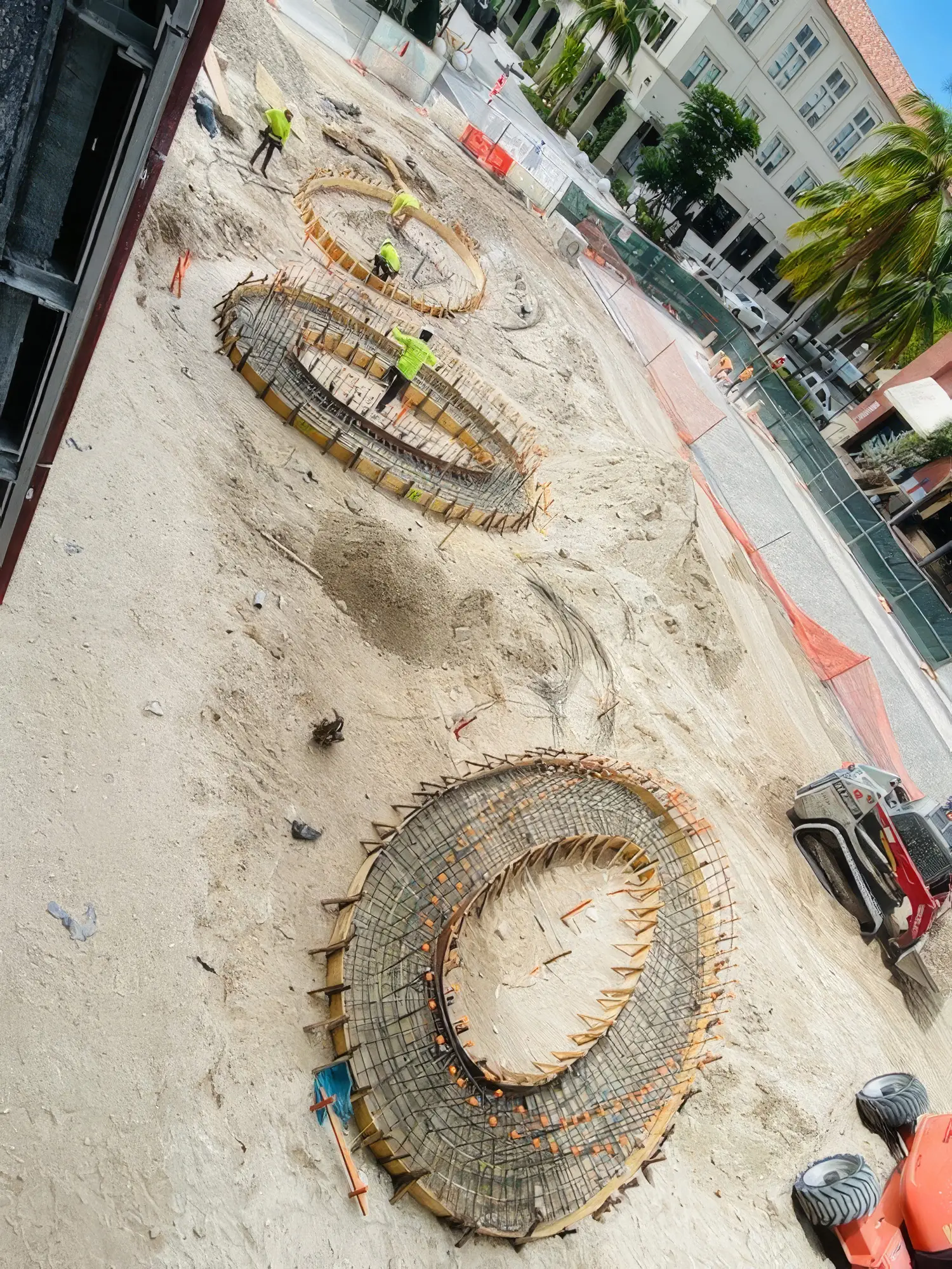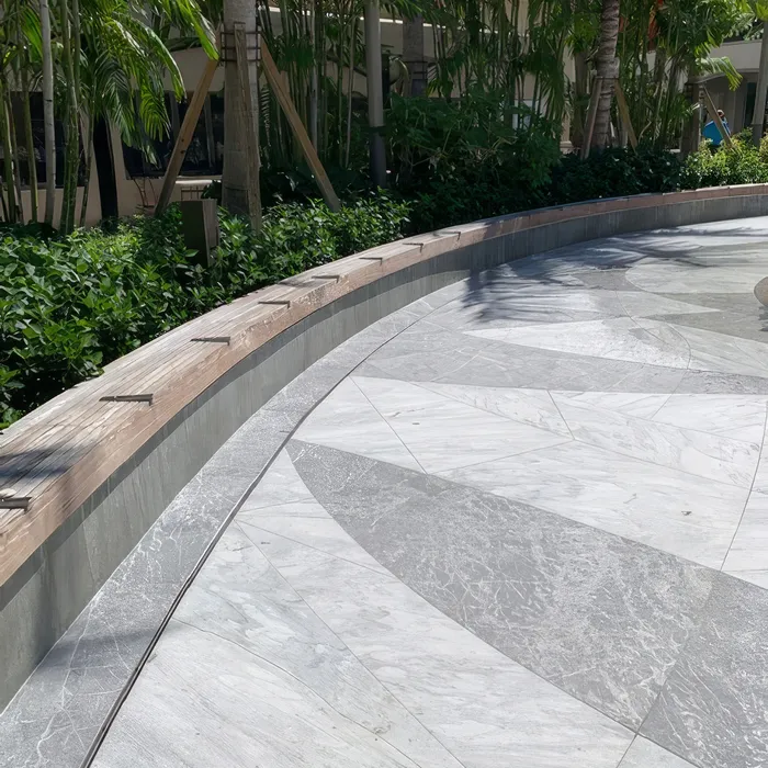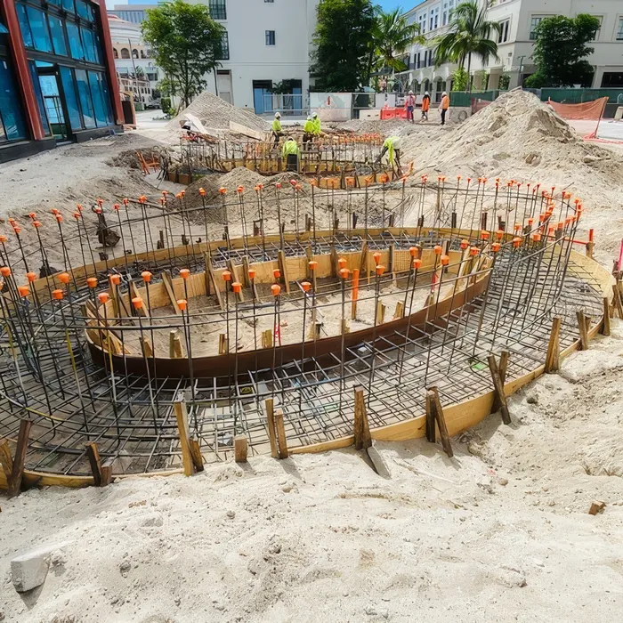 Shellco Construction delivered custom-designed concrete benches for Rosemary Square, featuring multiple shaped configurations that function as both seating and raised planters in this vibrant public space. The project required forming and advanced concrete work to create the complex curved and angular shapes, topped with polished gray concrete surfaces and integral teak wood seating elements for comfort and visual warmth.