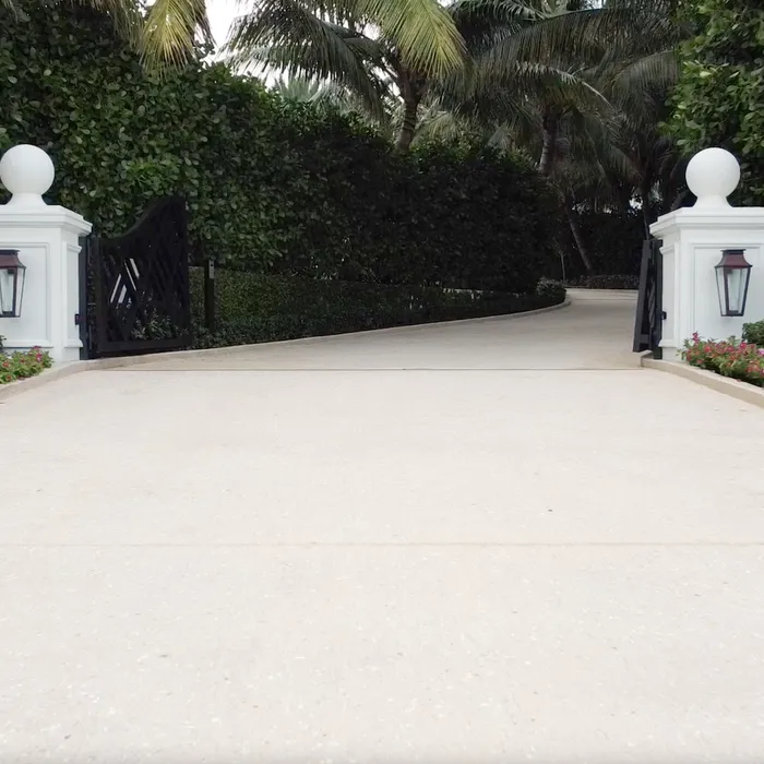 Shellco Construction delivered an exceptional 9,862 square foot diamond pattern tabby driveway for this prestigious oceanfront manor, featuring Beach Beige Tabby concrete with #3 Coquina Shell aggregate and a precision sandblasted finish that creates both stunning visual impact and optimal surface texture. The project showcased advanced decorative concrete techniques through the execution of intricate geometric diamond patterns that required precise forming, careful aggregate placement, and skilled sandblasting to achieve the sophisticated finish that complements the estate's classical architecture.