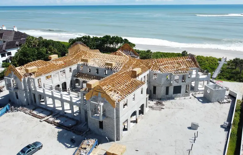 Shellco Construction delivered an extraordinary 28,444 square foot oceanfront estate on a spectacular 2.7-acre ocean lot with direct beach access, demonstrating our mastery of complex coastal construction and advanced foundation systems. The project featured an auger pile foundation with monolithic structural slab engineered specifically for oceanfront conditions, topped with cast-in-place concrete second floor construction and sophisticated roof framing systems designed to withstand coastal elements.