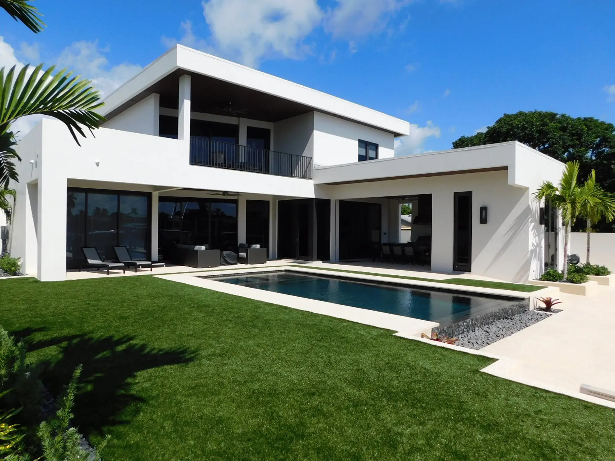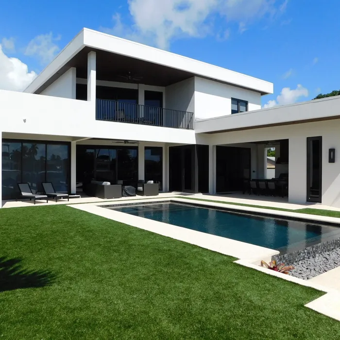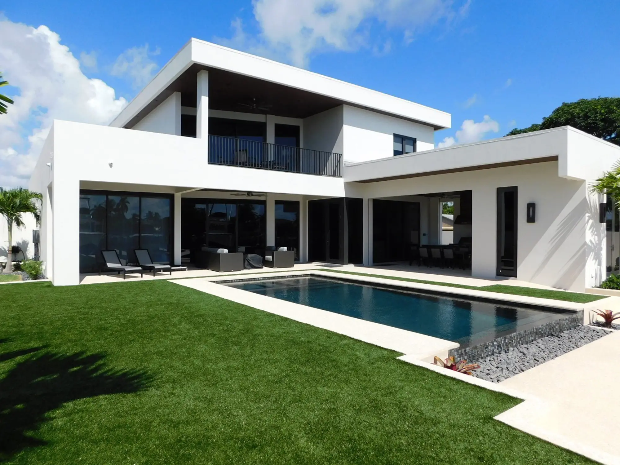 Shellco Construction provided comprehensive shell work and specialty concrete services for this 7,000 square foot Palm Beach Gardens residence, delivering a diverse range of high-end concrete applications that showcase advanced finishing techniques and custom craftsmanship. The project featured polished standard gray concrete for the front driveway, Mesa Beige tabby concrete pool deck with honed surface and light sandblasting for slip resistance, hand-formed concrete stair treads with black pigment, and exposed concrete walls with precision tool joint finishes that demonstrate Shellco's mastery of both functional and decorative concrete applications.