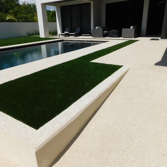 The variety of concrete finishes and techniques employed throughout this project illustrates Shellco's capability to execute multiple specialized concrete applications within a single residence, from the precision-polished driveway surfaces to the custom-colored and hand-formed stair treads that serve as architectural focal points. The Mesa Beige tabby pool deck represents particularly advanced surface treatment work, requiring skilled honing with hand grinders followed by controlled light sandblasting to achieve both aesthetic appeal and essential safety features. This comprehensive approach to specialty concrete work positions the Pirate Cove residence as an exemplary showcase of Shellco's ability to deliver diverse, high-quality concrete solutions that enhance both the functionality and architectural character of luxury residential projects.
